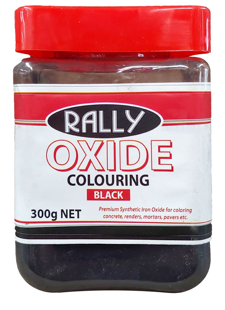 Rally Black Oxide Powder is a high quality, colour stable, iron oxide, designed to colour concretes, renders, mortars and pavers. Available in 300 Grams, 750 Gram & 2.5 KG